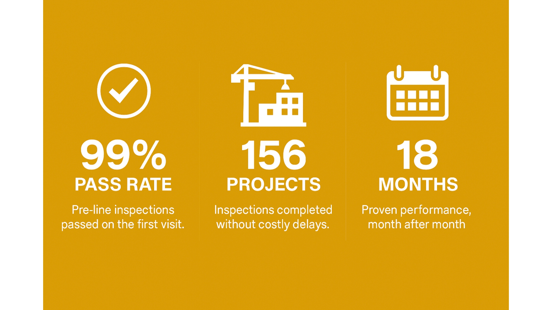 99%+ Pass Rate: Only 3 pre-line failures out of hundreds of projects completed