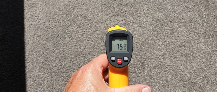 The carpet protected by the Ecolux film is over 30 degrees celsius cooler than the unprotected carpet.